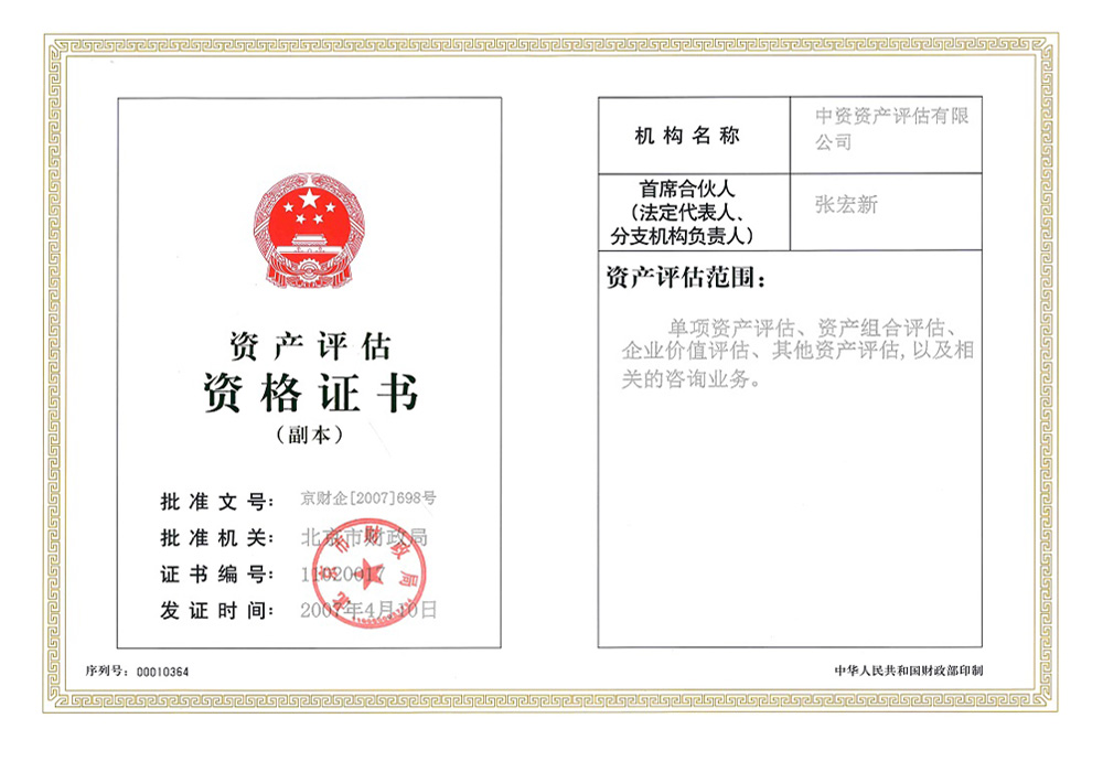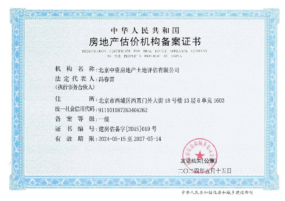 房地產(chǎn)估價(jià)機(jī)構(gòu)資質(zhì)證書(shū)
